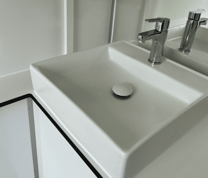 De wagen is voorzien van een houten vloer en de binnenkant van de wagen is geheel antraciet ingericht. Verder heeft u twee wasbakken en spiegels tot uw beschikking bij de dames inclusief handdrogers. Bij de heren heeft u een enkele wasbak met spiegel en handdroger